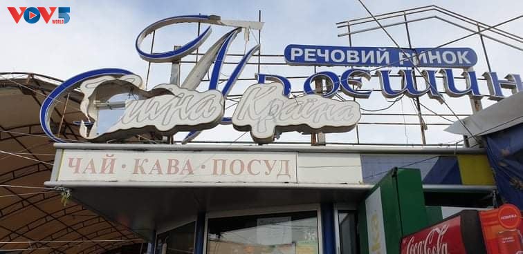 Chợ Troeshina nơi chủ yếu tập trung bà con người Việt Kiev kinh doanh cá thể. - Ảnh: Hồ Sỹ Trúc.