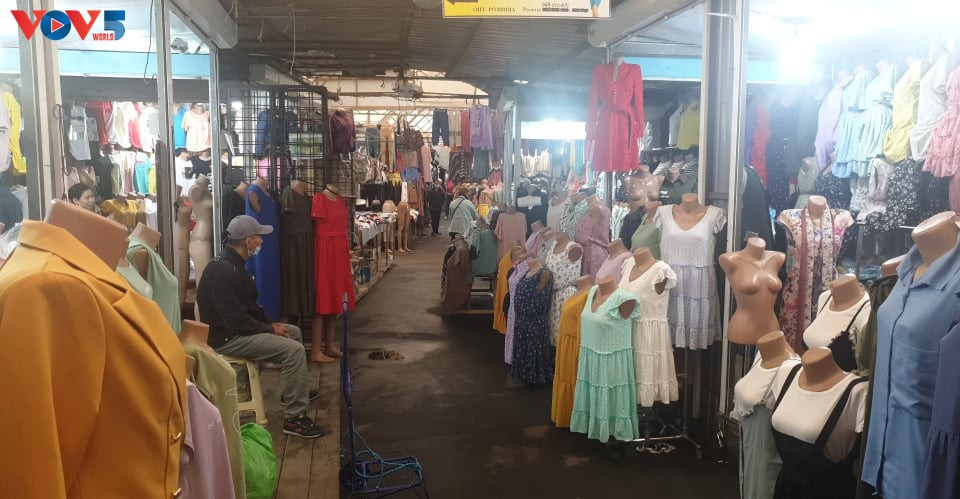 Do ảnh hưởng nặng nề của dịch covid, cùng với tình hình kinh tế xã hội khó khăn chung của Ucrraine, bà con tiểu thương ở chợ kinh doanh chủ yếu duy trì cuộc sống hàng ngày. - Ảnh: Hồ Sỹ Trúc.