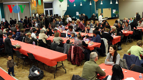 | Mọi người thưởng thức các món ăn Việt Nam và trò chuyện |