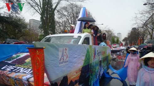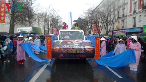 Ngày 14/02, lần đầu tiên kể từ hai thập kỷ, 3 xe của người Việt tại Pháp đã tham gia buổi diễu hành tại quận 13 - quận tập trung đông người châu Á tại Paris- nhân dịp khép lại Tết châu Á. Dù trời mưa, song những tà áo dài Việt Nam vẫn tung bay và những khúc ca mùa xuân Việt Nam vang lên trên đường phố Paris, làm nức lòng bà con người Việt khi Tết đến, Xuân về.