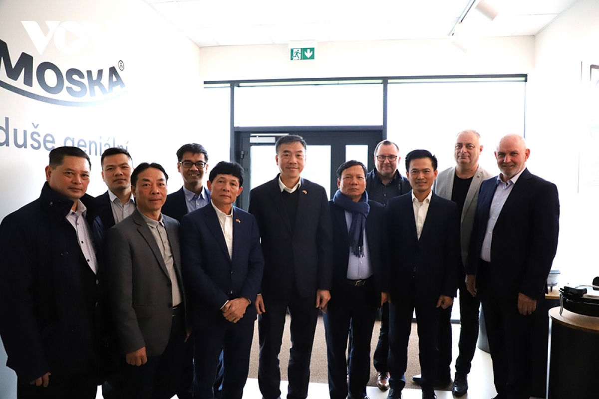 Đoàn công tác chụp ảnh lưu niệm với lãnh đạo Hội người Việt tại Bắc Morava - Ostrava và Doanh nghiệp Elmich của người Việt tại Séc. |