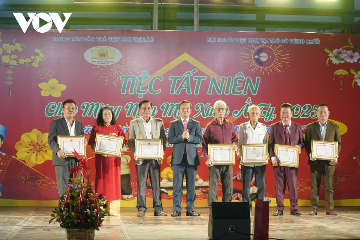 Tiệc tất niên năm nay có chủ đề "Xuân quê hương, san sẻ yêu thương", đây là sự kiện thường niên do Hội người Việt Nam thủ đô Vientiane tổ chức nhằm duy trì nét đẹp truyền thống văn hóa của dân tộc và mong muốn đem đến không khí Tết cổ truyền cho những người con đất Việt đang sinh sống và làm ăn tại Lào.