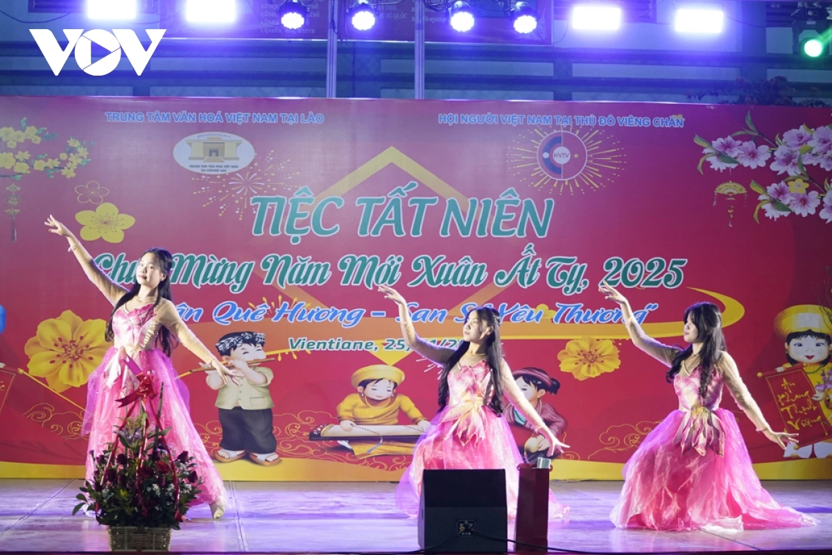 Tiệc tất niên năm nay có chủ đề "Xuân quê hương, san sẻ yêu thương", đây là sự kiện thường niên do Hội người Việt Nam thủ đô Vientiane tổ chức nhằm duy trì nét đẹp truyền thống văn hóa của dân tộc.