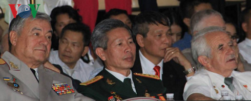 | Các cựu chiến binh Ukraine và Việt Nam tham gia lễ kỷ niệm. |