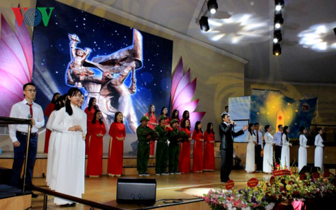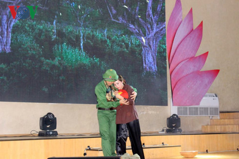 Ngay sau Lễ chào cờ và phút mặc niệm, các đại biểu tham dự xúc động với hoạt cảnh rước di hài liệt sỹ về quê hương trong ca khúc Linh thiêng Việt Nam (Sáng tác: Lê Quang, qua sự thể hiện của ca sỹ Xuân Trường và hợp ca nam nữ Đội nghệ thuật cộng đồng thành phố Odessa). Khán phòng bỗng lắng xuống trong một cảm xúc như các anh các chị tuổi đời thanh xuân đang trở về “nơi mình đã ra đi".
