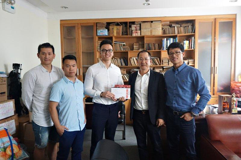 Nguyễn Mạnh Tùng (thứ hai từ trái sang) trao tặng quỹ hỗ trợ các trẻ em thiệt thòi tại Việt Nam - Ảnh nhân vật cung cấp |