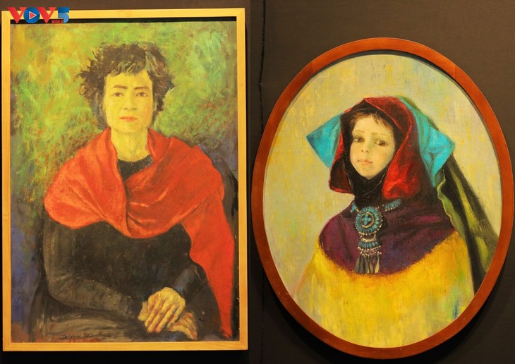 Hai bức vẽ chân dung chân dung trong bộ tác phẩm "Những người dệt mộng" của họa sĩ Tô Bích Hải. Ảnh: Lệ Chi |