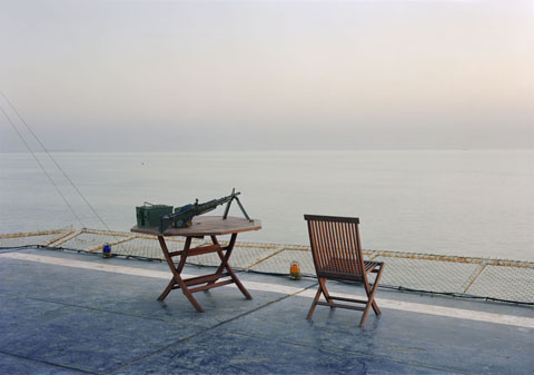 | Bức ảnh khẩu súng bán tự động M-246 tại bến tàu ở Iraq năm 2007, trong bộ ảnh Events Ashore. |