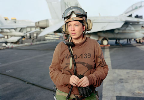 | Chân dung một nhân viên giám sát trên tàu USS Ronald Reagan tại phía bắc Vịnh Arab năm 2009. |