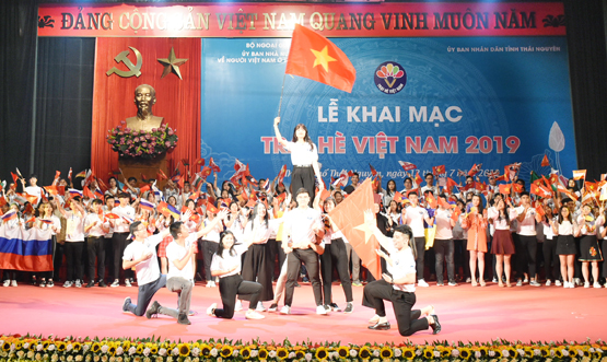 Một tiết mục văn nghệ trong lễ khai mạc Trại hè Việt Nam 2019. |