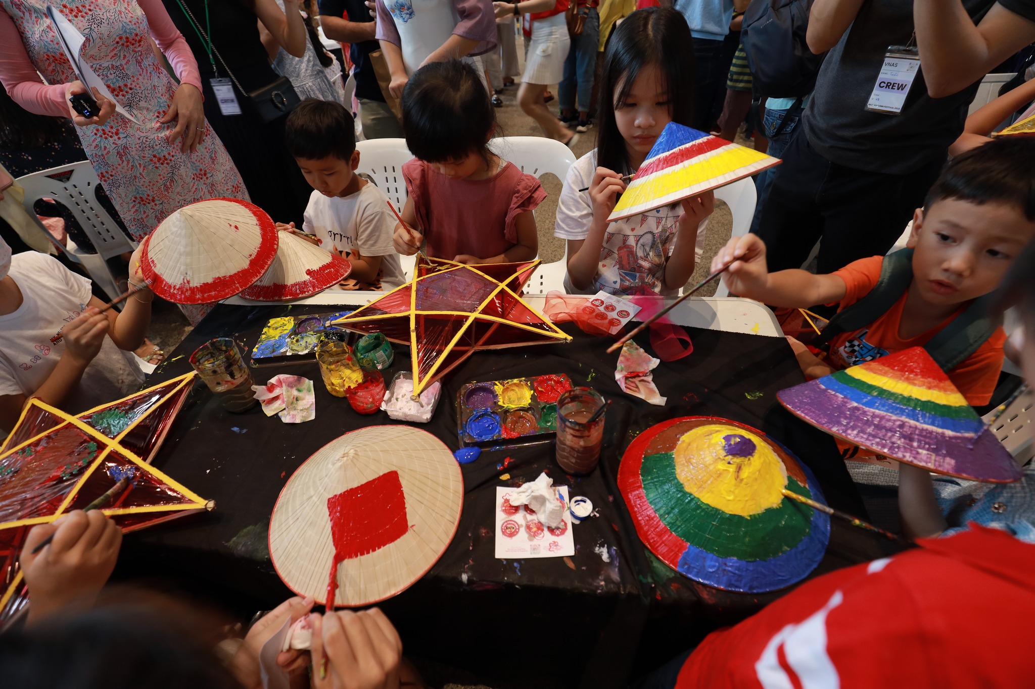 Trẻ em người Việt tại Singapore thích thú trải nghiệm vẽ nón. Ảnh minh họa. Nguồn: Ban Liên lạc Cộng đồng Người Việt Nam tại Singapore |