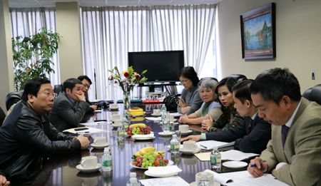 | Đoàn công tác gặp gỡ và tiếp xúc với Kiều bào, doanh nhân người Việt tại New York ngày 16/3. Ảnh: TTXVN |