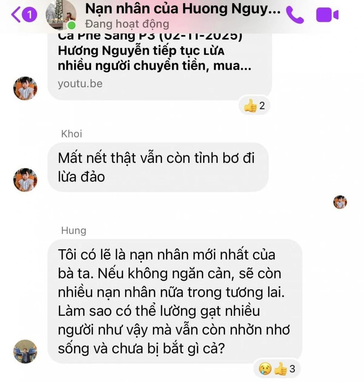 Có những người cũng đòi được tiền, thường là khi khoản tiền họ bị mất không lớn lắm. Tuy nhiên Huong Nguyen cũng chỉ trả cho họ số tiền ít, trả làm nhiều lần.