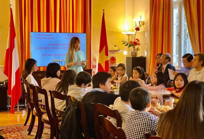 Lễ khai giảng lớp dạy tiếng Việt dành cho con em cộng đồng người Việt Nam tại thủ đô Vienna, Áo. Ảnh: hanoimoi.com.vn |