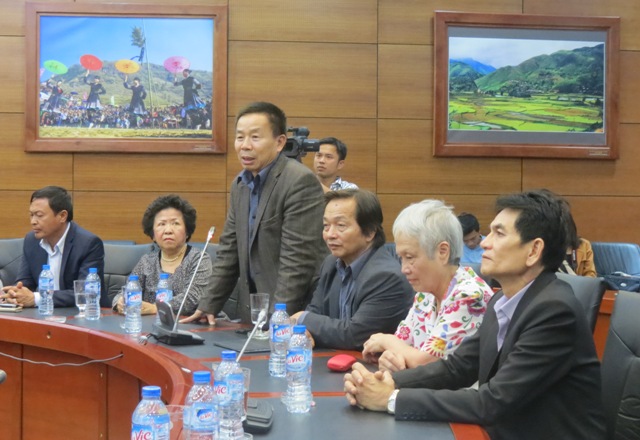 | Ông Lê Thiết Hùng, kiều bào tại Ba Lan, phát biểu tại buổi gặp mặt với lãnh đạo UBND tỉnh Lào Cai trong chuyến về nước dự Đại hội Thi đua yêu nước toàn quốc lần này . |