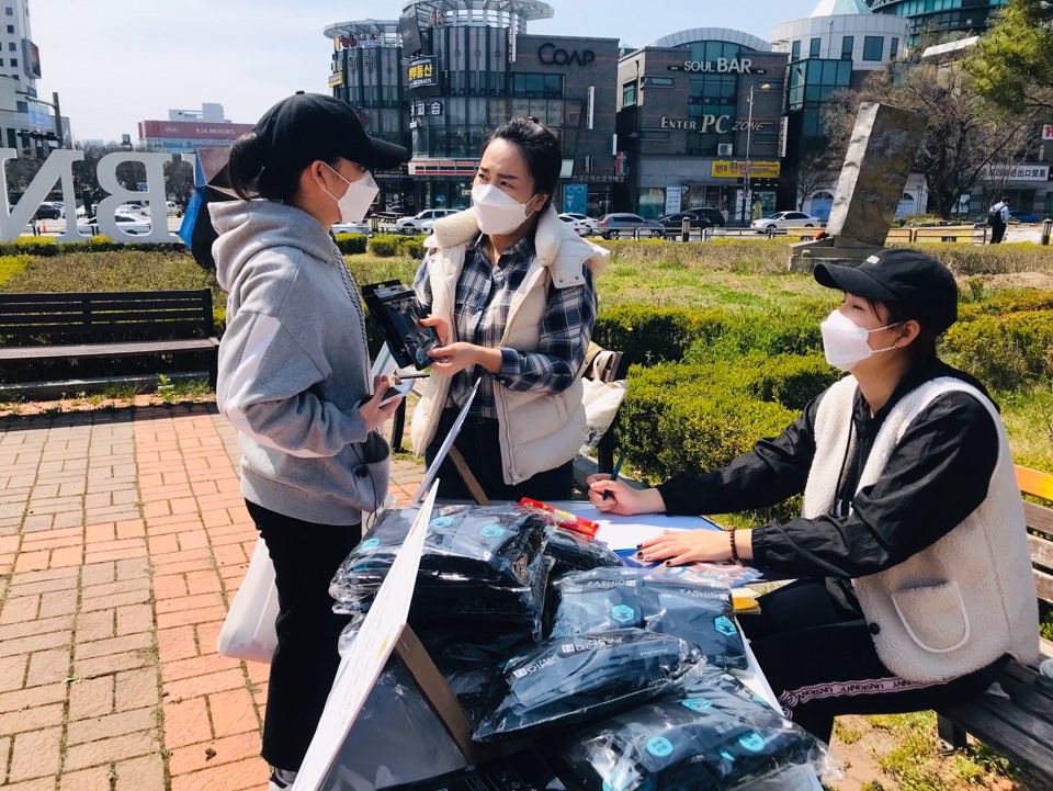 Trong thời điểm cuối tháng hai, đầu tháng 3, Hàn Quốc ở trong tình trạng khan hiếm khẩu trang và các sản phẩm khử trùng khác. Hội sinh viên Việt Nam tại Hàn Quốc (VSAK) triển khai chương trình “Sinh viên Việt Nam tại Hàn Quốc – Chung tay chống dịch Covid-19”. Hội đã kêu gọi tài trợ và nhanh chóng gửi hàng ngàn chai dung dịch rửa tay khô có tổng giá trị 19,5 triệu won, tương đương gần 400 triệu đồng cho sinh viên Việt Nam tại vùng tâm dịch Daegu, Gyeongbuk và các tỉnh, thành khác. Nguyễn Anh Thư, sinh viên trường Đại học Namseoul, cho biết: “Hội sinh viên Việt Nam tại Hàn Quốc đã kêu gọi mọi người cùng chung tay quyên góp để phát miễn phí 10.000 khẩu trang đến cho các sinh viên Việt Nam tại Hàn Quốc. Bên cạnh đó, em cũng được biết, sinh viên Việt Nam tại Hàn Quốc đã kết hợp cùng với một số đơn vị tổ chức để trao khẩu trang và một số nhu yếu phẩm cần thiết đến với các bạn. Bản thân em cảm thấy rất trân trọng những hành động có ý nghĩa như vậy”.