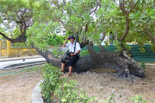 | Anh Thế Sáng ngồi bên cây phong ba ở đảo Sinh Tồn |