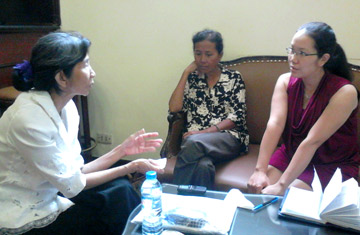 Cuộc trò chuyện giữa chúng tôi bị gián đoạn bởi đã đến giờ các học viên trở lại lớp Tập huấn. Nhìn những nếp nhăn trên khuôn mặt hai người phụ nữ khắc khổ ấy, tôi hỏi: "Cuộc sống ở đấy vất vả quá, nếu được tạo điều kiện, các cô có về Việt Nam không?"