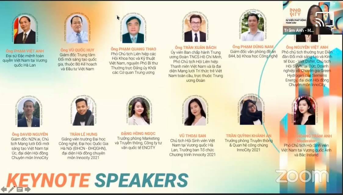 Ngày 19/8, lễ phát động chương trình Sáng kiến trẻ Việt Nam toàn cầu (InnoCity Global Launching 2021) diễn ra theo hình thức trực tuyến tại Trung tâm Đổi mới sáng tạo Quốc gia (Việt Nam). Tham dự sự kiện còn có đại diện các cơ quan Bộ Kế hoạch và Đầu tư, Bộ Ngoại giao, Bộ Khoa học và Công nghệ, Bộ Giáo dục và Đào tạo, các Đại sứ quán Việt Nam tại nước ngoài, cộng đồng chuyên gia, trí thức người Việt tại nước ngoài.