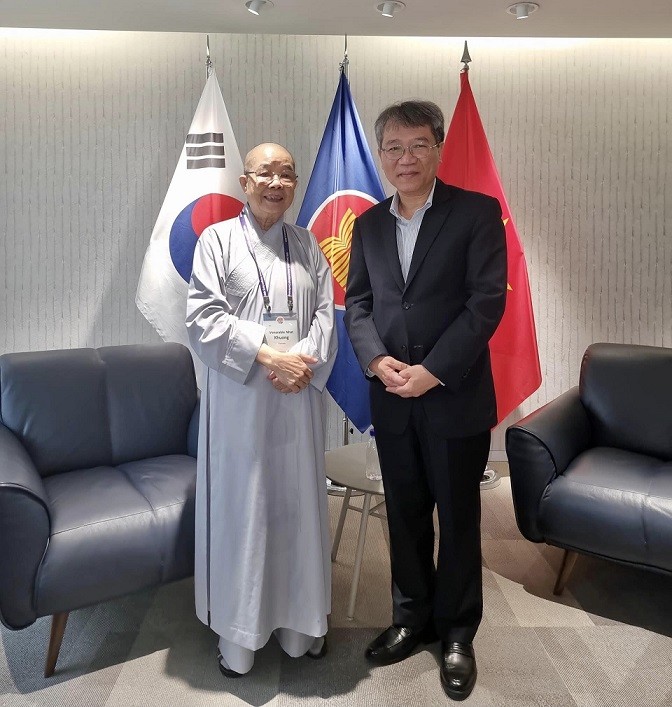 Mới đây, Đoàn Ni giới Việt Nam đã tới thăm Đại sứ Việt Nam tại Hàn Quốc. Đoàn Ni giới Việt Nam có Ni trưởng Thích Nữ Huệ Hương – Ủy viên Hội đồng Trị sự, Chứng minh Thường trực Phân ban Ni giới Trung ương; Ni trưởng Thích Nữ Nhật Khương (Trưởng đoàn) – Ủy viên Ban Thường trực Hội đồng Trị sự, Trưởng Phân ban Ni giới Trung ương; Ni trưởng Thích Nữ Như Thảo – Ủy viên Ban Thường trực Hội đồng Trị sự, Phó Trưởng Phân ban Ni giới Trung ương; Ni trưởng Thích Đàm Lan – Ủy viên Ban Thường trực Hội đồng Trị sự, Phó Trưởng Phân ban Ni giới Trung ương.