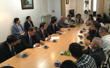 Phó Chủ tịch Quốc hội Phùng Quốc Hiển làm việc với Việt kiều tại Pháp. VOV |