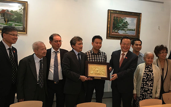 Phó Chủ tịch Quốc hội Phùng Quốc Hiển tặng quà cho các Hội đoàn người Việt tại Pháp. VOV |