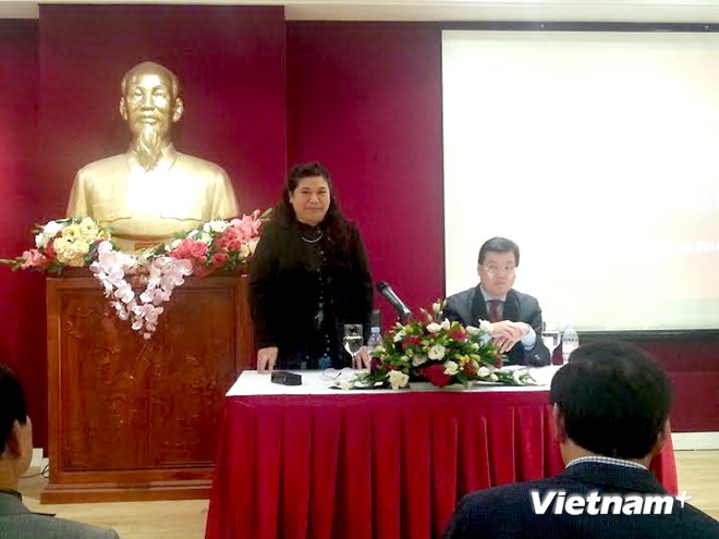 Phó Chủ tịch Quốc hội Tòng Thị Phóng phát biểu tại buổi nói chuyện với cộng đồng người Việt Nam tại Pháp. (Ảnh: Bích Hà/Vietnam+)