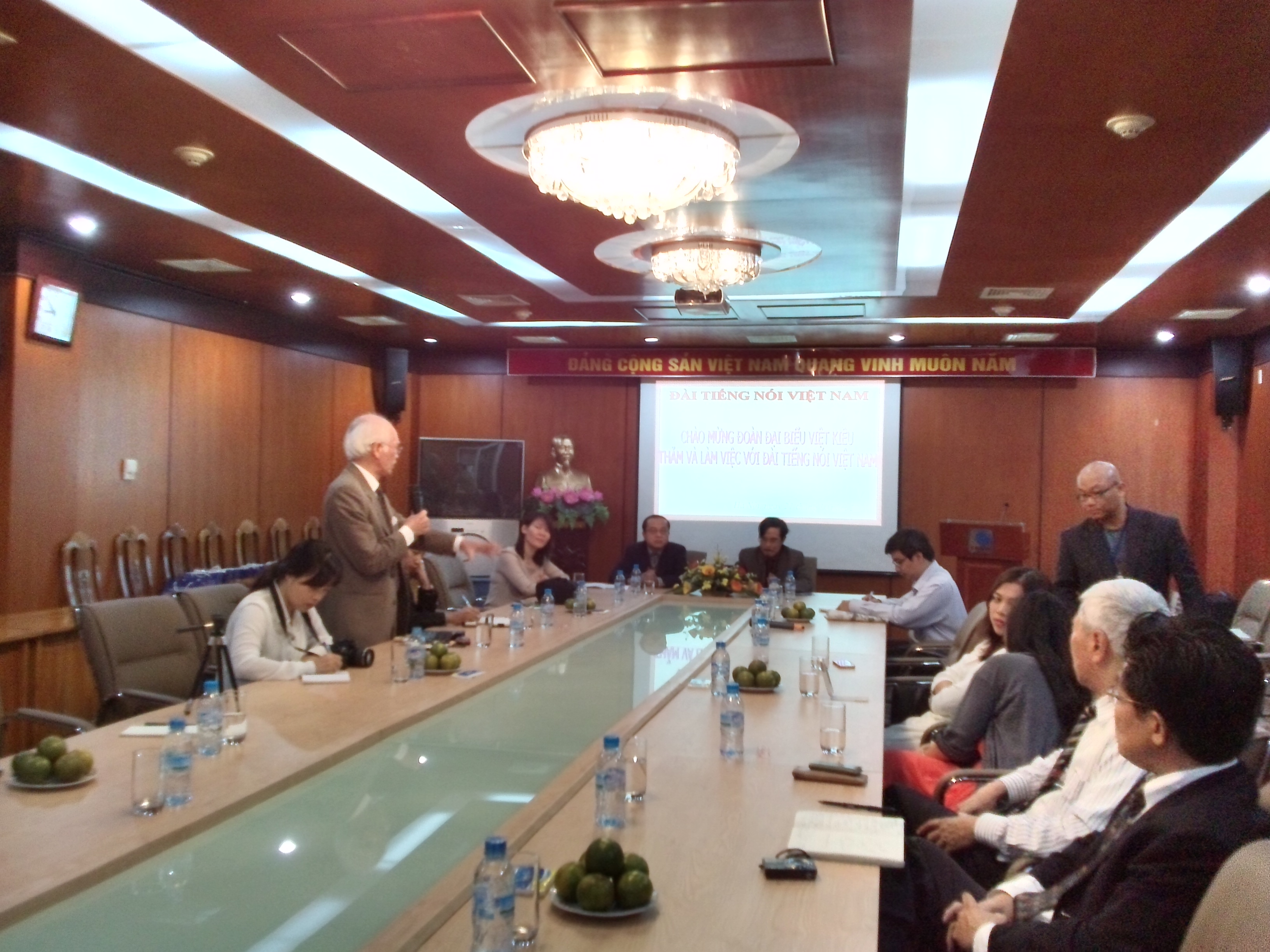 Tham gia đoàn báo chí kiều bào về nước lần này có nhiều đại diện các báo trong cộng đồng người Việt tại Mỹ. Luật sư Đinh Viết Tứ, chủ bút báo Hướng Việt, người đã có nhiều dịp làm việc với Đài Tiếng nói Việt Nam, nêu ý kiến: "Tôi rất vui vì hôm nay chúng tôi có dịp được hiểu hơn về Đài Tiếng nói Việt Nam. Tôi thấy có những điều rất mới, đó là số giờ quảng bá ra nước ngoài nhiều, và chú ý đến nhiều ngôn ngữ. Hiện nay Đài Tiếng nói Việt Nam đã ký hợp đồng với các hãng thông tấn quốc tế. Ở Mỹ có nhiều hãng thông tấn địa phương, tuy nhỏ nhưng đi sâu vào đời sống của người dân. Theo tôi, nếu liên kết được với các đơn vị đó thì sẽ nắm bắt được thông tin về đời sống của người Việt ở đó".