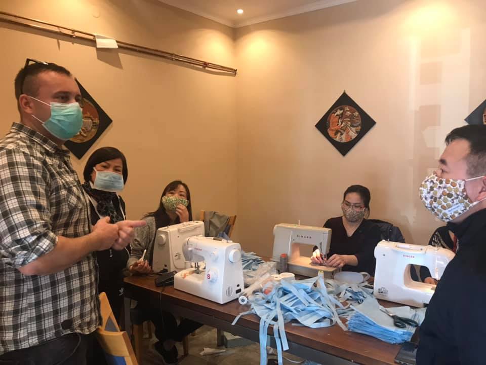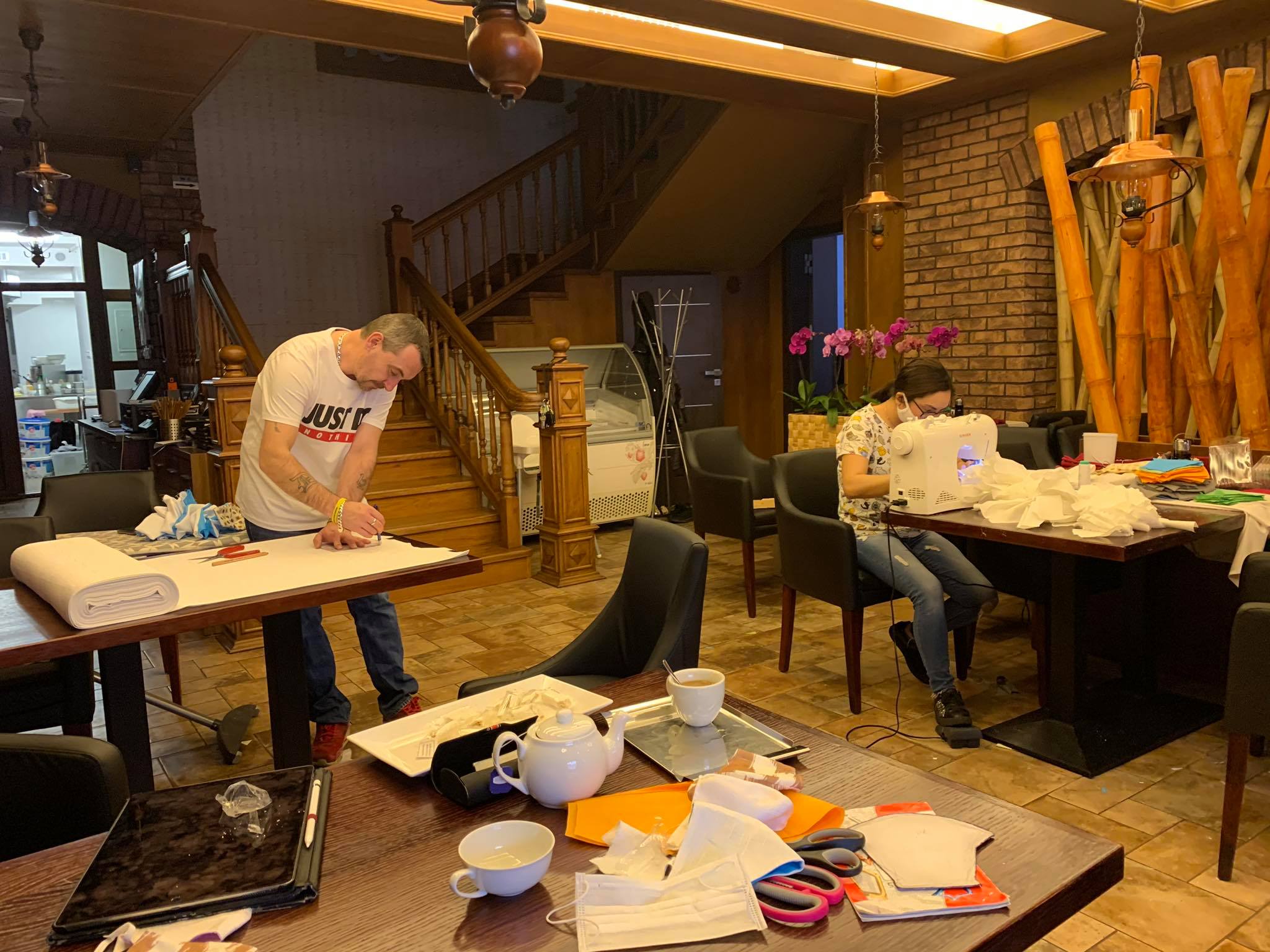 Nhà hàng thành nơi...may khẩu trang để góp phần đẩy lùi nguy cơ dịch bệnh - Ảnh: Fb nhân vật.