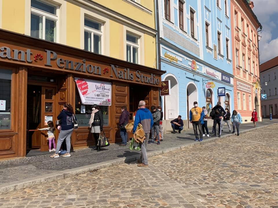 Những ngày đầu sản xuất không kịp, bà con người Séc vẫn xếp hàng để đợi. - Ảnh: Fb nhân vật.