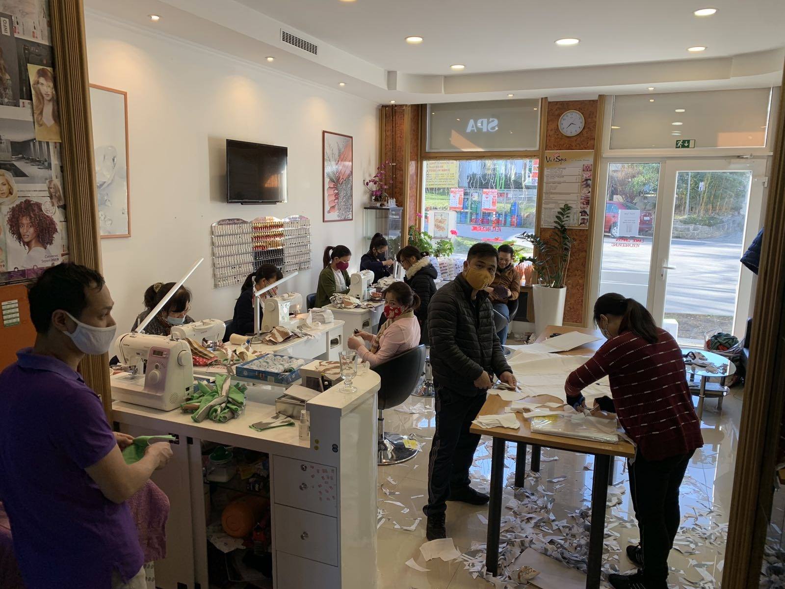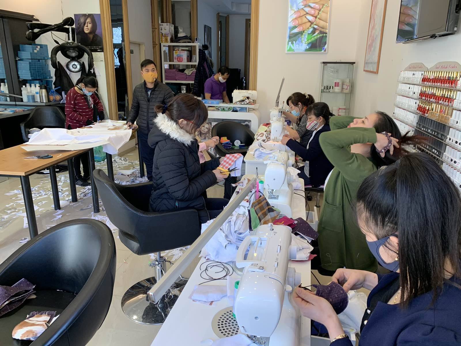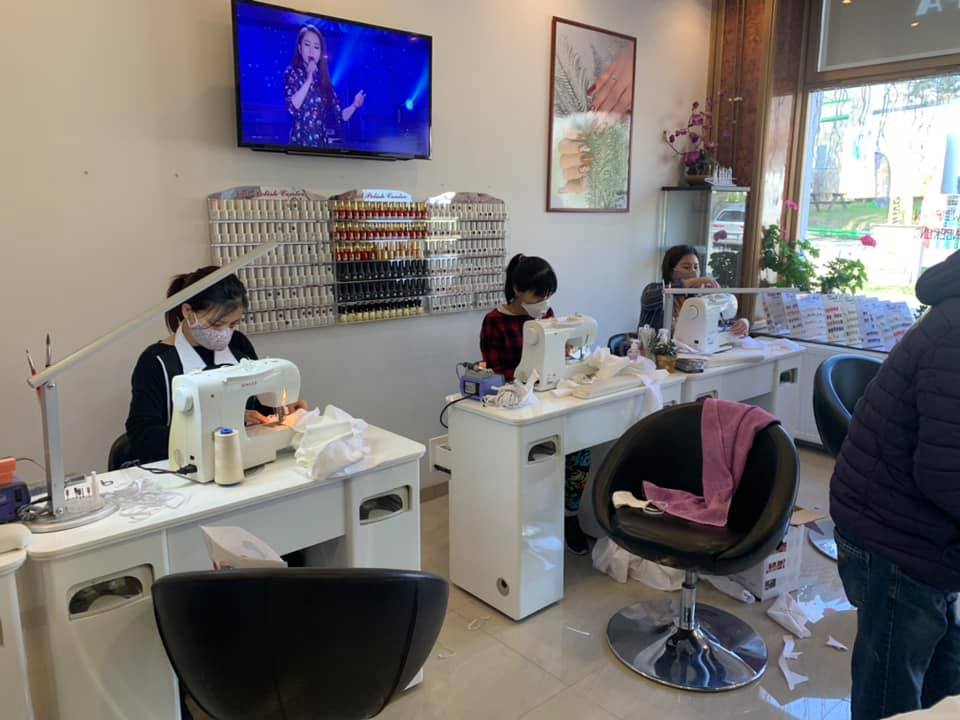 Khi tiệm nail trở thành...xưởng may dã chiến - Ảnh: Fb nhân vật.