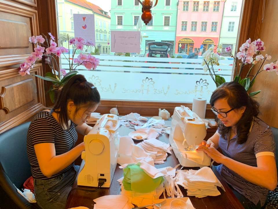 Chung tay cùng phong trào cộng đồng, 4 nhà hàng Việt House ở 4 thành phố và các tiệm nail của anh Chu Minh Khánh ở CH Séc hiện đang tạm chuyển thành… “xưởng dã chiến” may khẩu trang miễn phí.