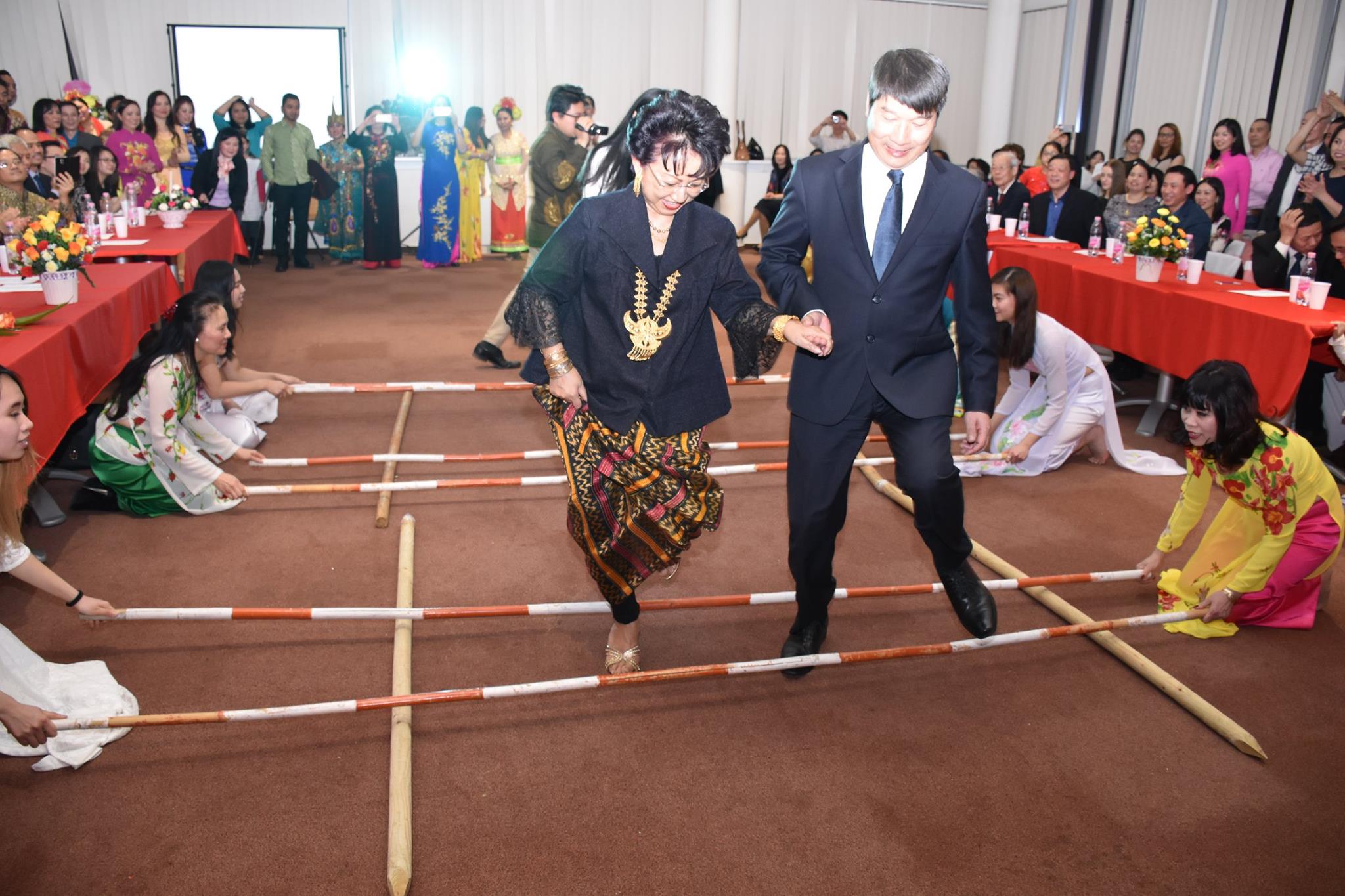 Đại sứ Việt Nam và đại sứ Indonesia cùng vui múa sạp