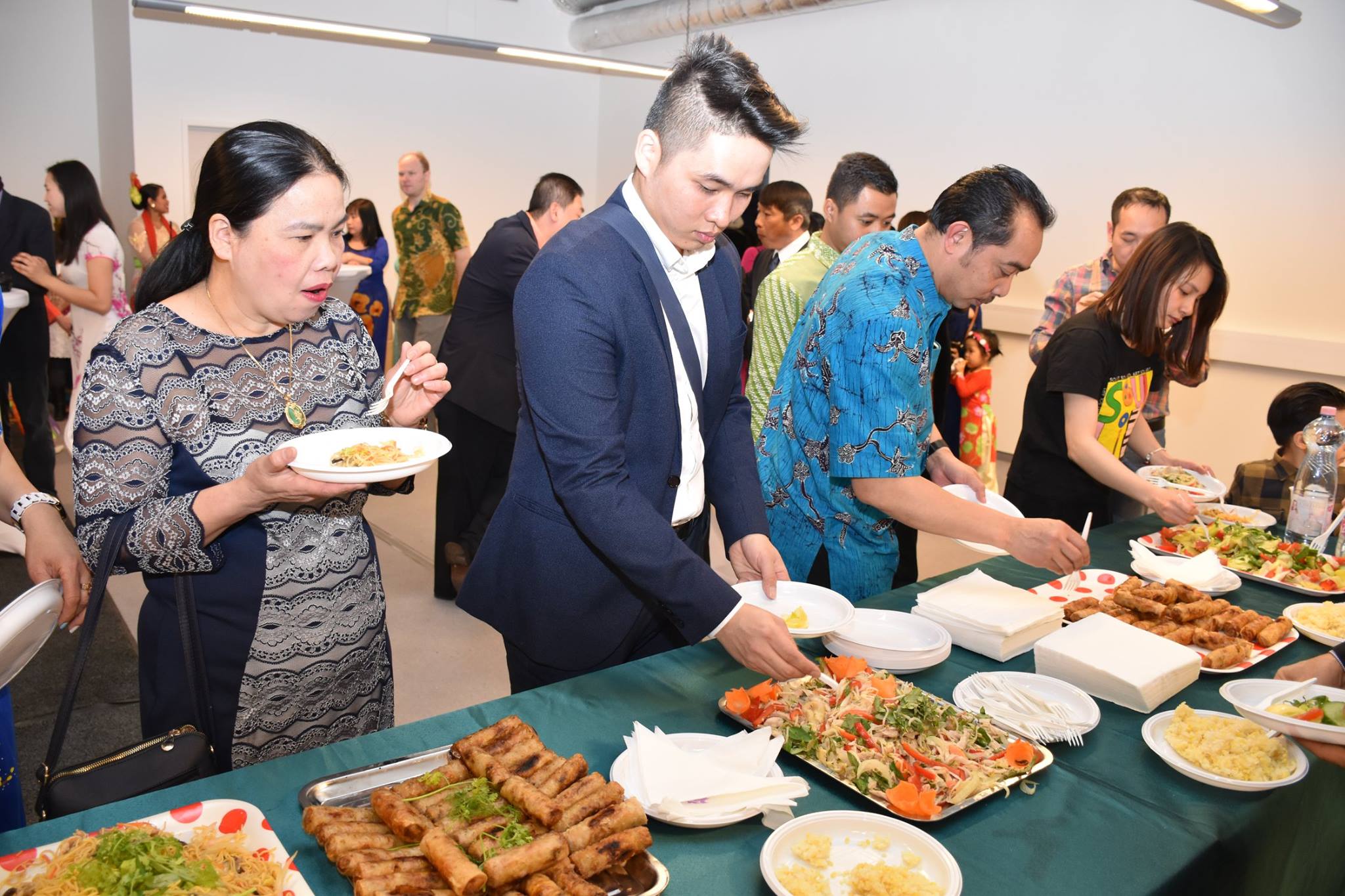 Bên cạnh chương trình giao lưu văn hóa khách mời và bạn bè các nước còn được thưởng thức những món ẩm thực truyền thống Việt Nam do bàn tay khéo léo của chị em Hội Phụ nữ Việt Nam tại Hungary chuẩn bị.