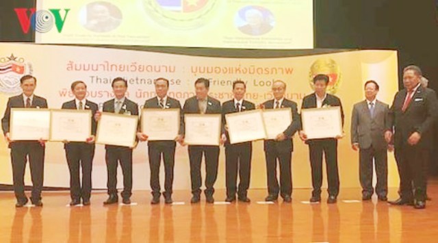 Tại hội thảo, Hội Hữu nghị Thái-Việt trao bằng khen và huy hiệu cho hơn 30 cá nhân đã có công đóng góp trong quan hệ ngoại giao nhân dân giữa hai nước |