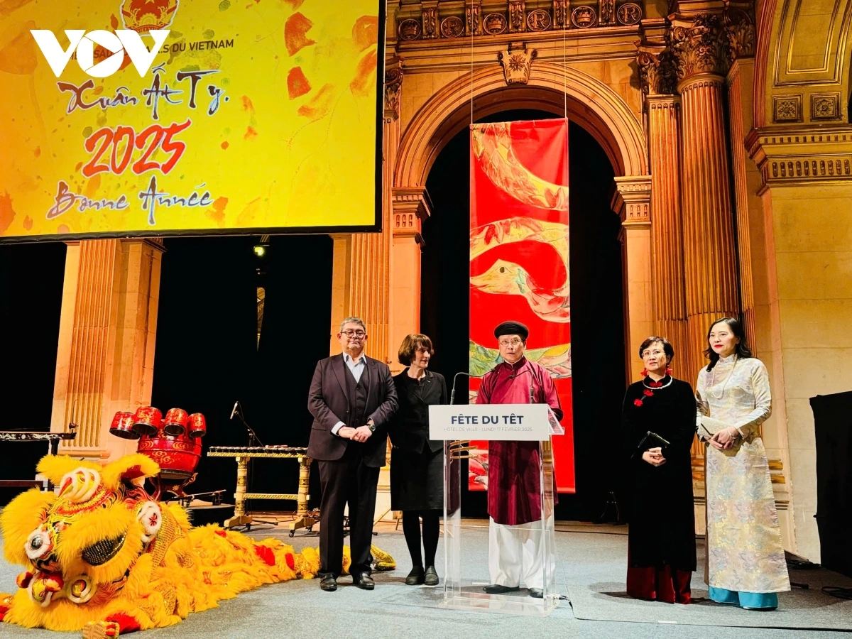 "Xuân Ất Tỵ 2025 lần này được tổ chức tại đại sảnh của Tòa thị chính Paris trong không khí phấn khởi của cộng đồng người Việt tại Pháp. Phấn khởi vì sự phát triển, vì sự tin tưởng của cộng đồng vào tương lai và sự cất cánh của đất nước trong giai đoạn hiện nay. Phấn khởi vì những bước phát triển mạnh mẽ vừa qua của quan hệ Việt – Pháp với chuyến thăm chính thức Pháp của Tổng Bí thư, Chủ tịch nước Tô Lâm và các chuyến thăm cấp cao giữa lãnh đạo hai nước trong thời gian sắp tới", Đại sứ Đinh Toàn Thắng nói.
