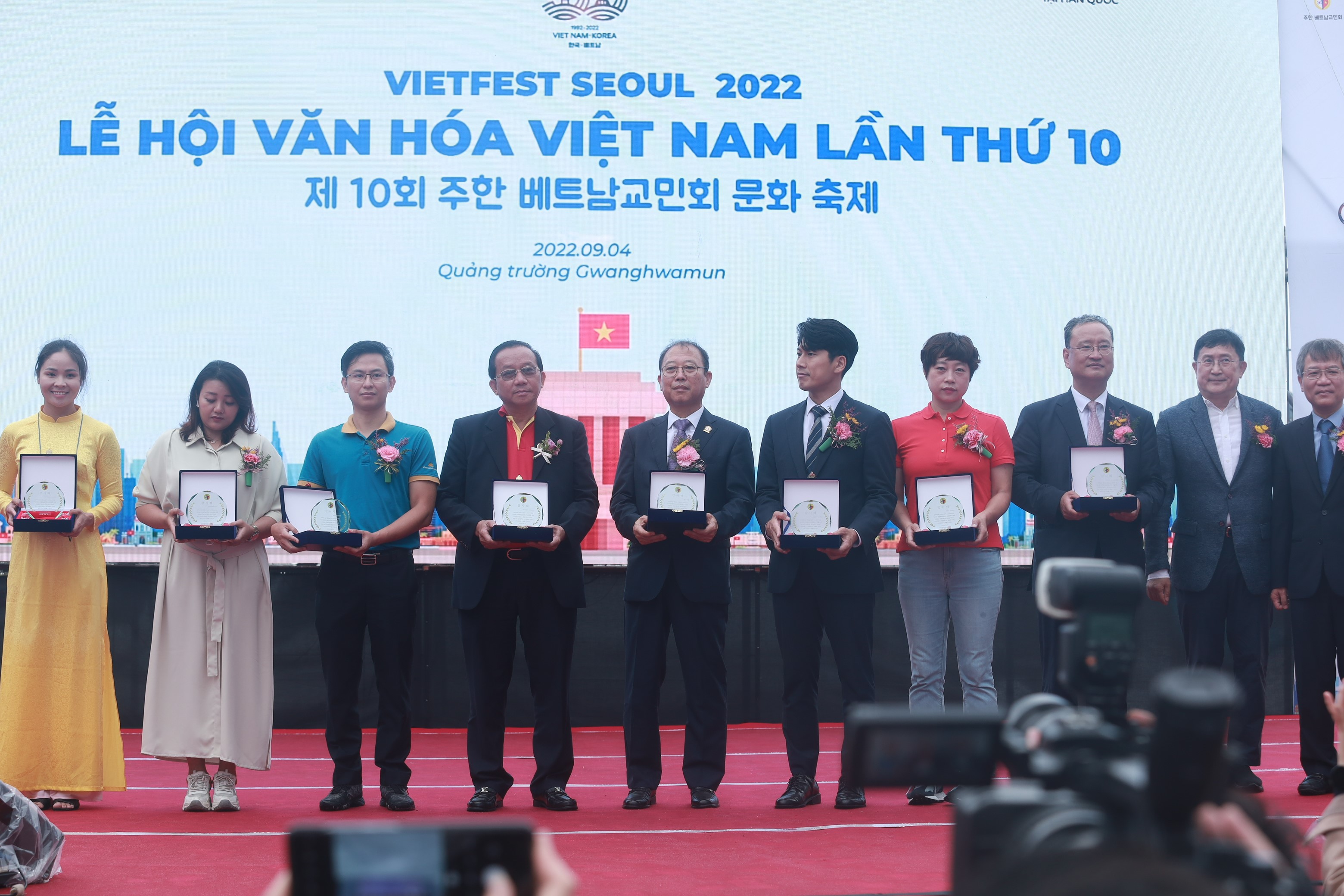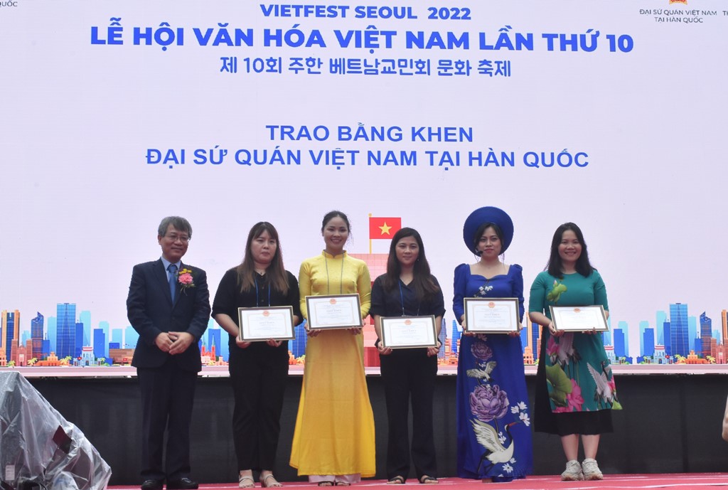 Trong khuôn khổ lễ hội, đại sứ Việt Nam tại Hàn Quốc Nguyễn Vũ Tùng trao kỷ niệm chương cho GS người Hàn Cho Jae Hyun và bà Huỳnh Thị Thái đã có nhiều đóng góp trong sự phát triển của quan hệ hữu nghị Việt Nam – Hàn Quốc. Ông Phùng Công Dũng, Chủ nhiệm Uỷ ban về người Việt Nam ở nước ngoài Thành phố Hồ Chí Minh, trao giấy khen cho các cá nhân có thành tích xuất sắc trong công tác về người Việt Nam ở nước ngoài trên địa bàn Thành phố Hồ Chí Minh. Đại diện Đại sứ quán Việt Nam tại Hàn Quốc trao giấy chứng nhận cho các giáo viên người Việt đã hoàn thành khoá giảng dạy tiếng Việt.