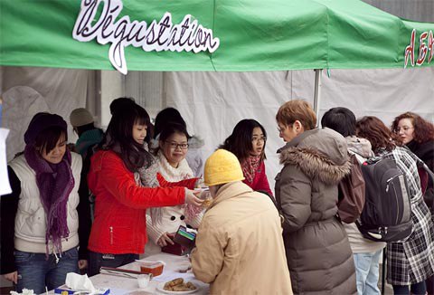 | Ảnh minh họa: Sinh viên Việt Nam giới thiệu các món ăn Việt cho du khách nước ngoài.Ảnh: Vnexpress.net |