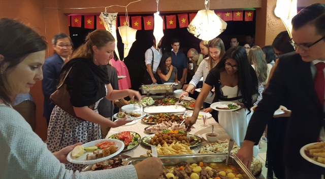 Sau chương trình giới thiệu văn hóa nghệ thuật, các vị khách mời vui mừng cùng thưởng thức các món ăn dân tộc Việt Nam.