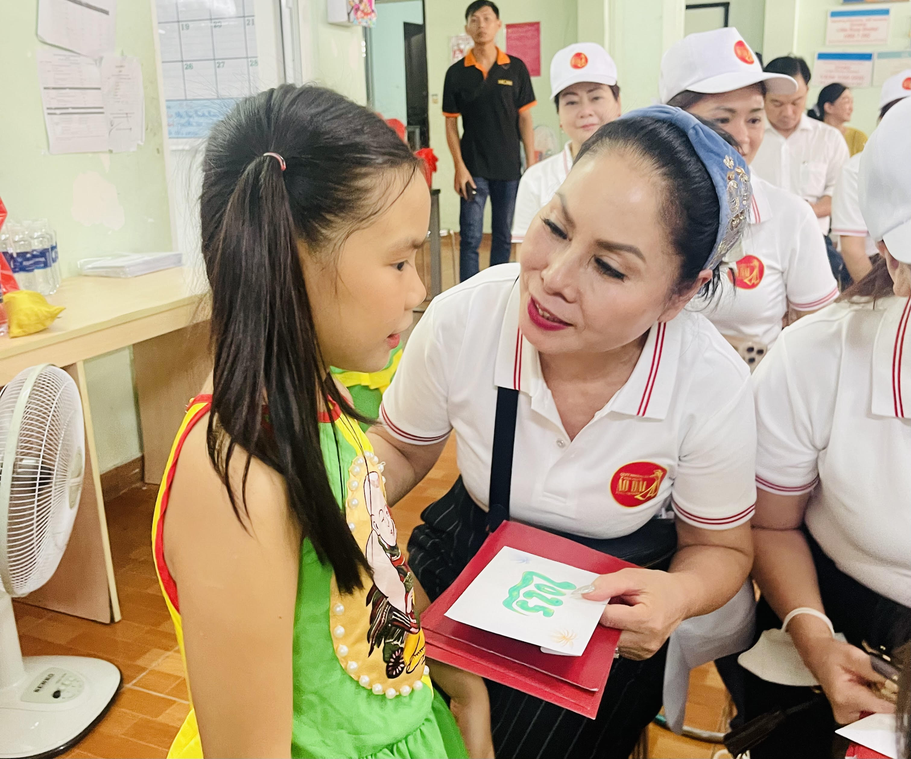 Các em nhỏ của Mái ấm Hoa hồng nhỏ gửi tặng các thành viên trong đoàn những tấm thiệp xinh xắn |