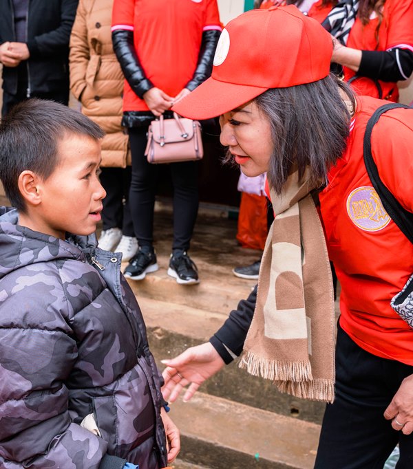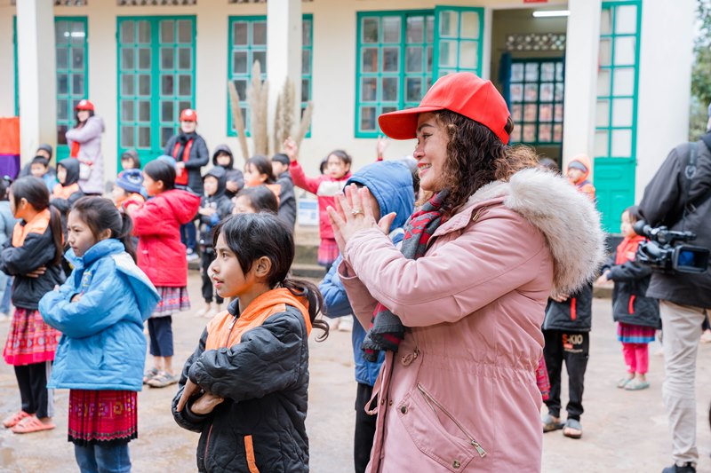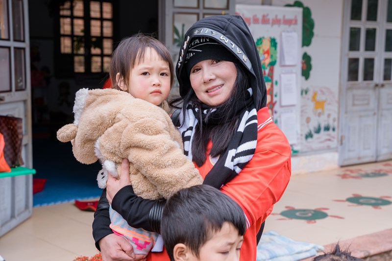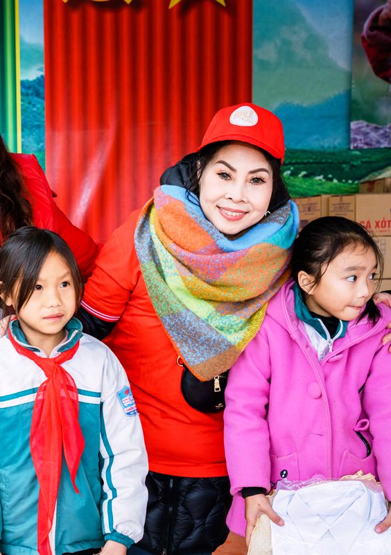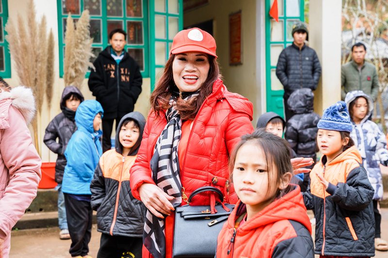 Chị Kim Thoa, Đại sứ nhân ái, Hoa hậu Áo dài phu nhân 2023: "Đường đi học của các con lên đèo xuống dốc mà các cháu đi bộ, lại không có giày dép. Tôi cảm nhận được cái lạnh thấu xương và tự thấy mình càng phải làm nhiều hơn nữa để mang những gì tốt đẹp cho các cháu". |