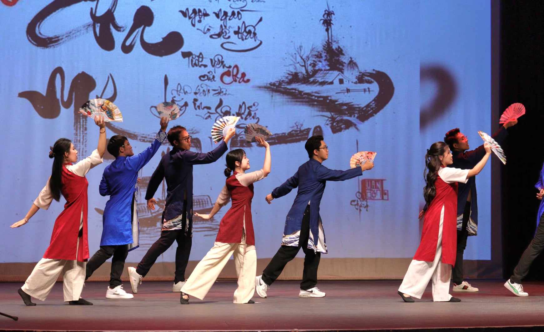 Tiết mục văn nghệ đặc sắc với áo dài của thế hệ trẻ. |