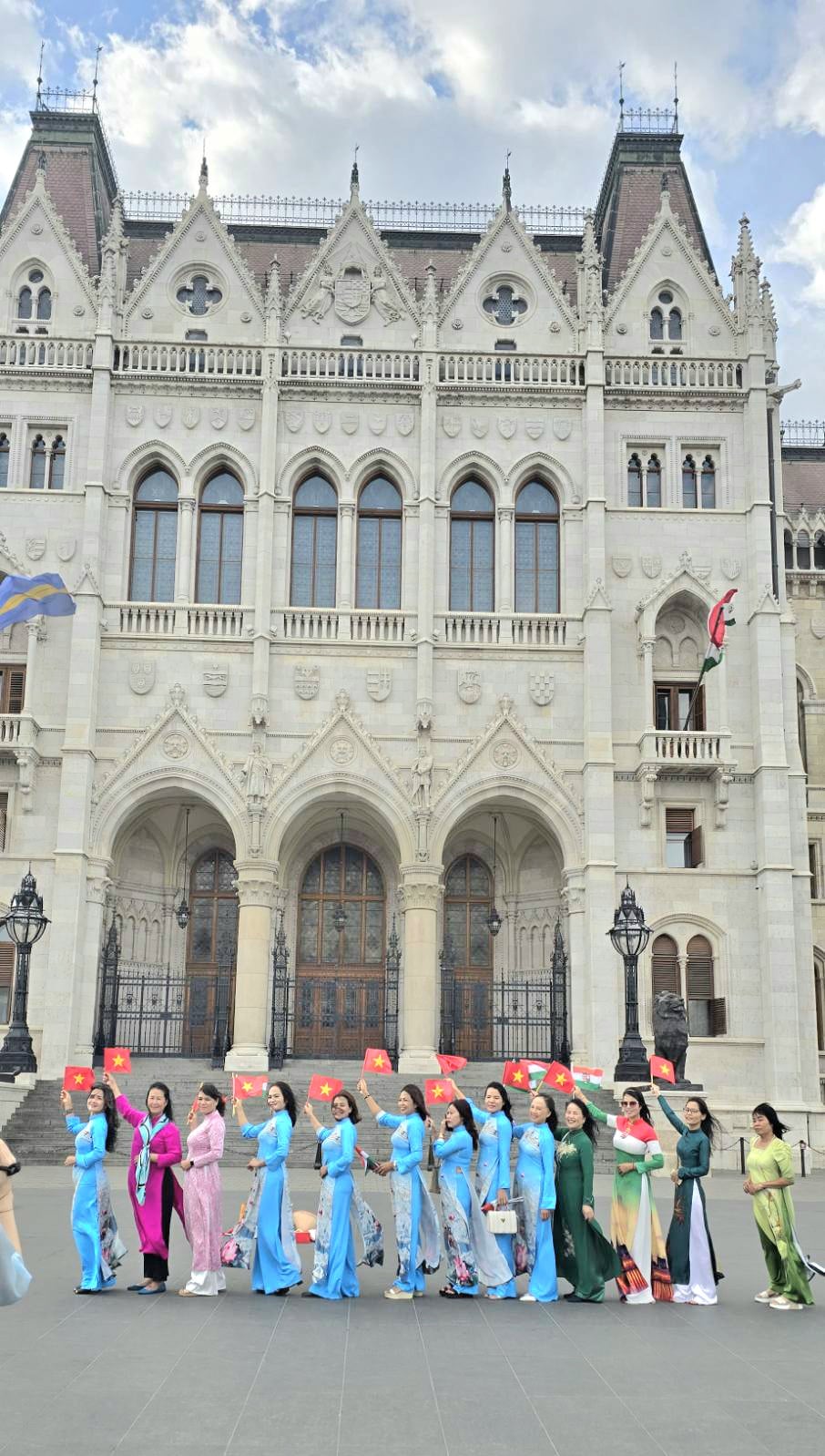Trong buổi chiều cùng ngày, các chị em từ CLB Di sản Áo dài Việt Nam từ các nước châu Âu đã có buổi diễu hành vô cùng ấn tượng với những bộ áo dài rực rỡ phong phú tại quảng trường Kossuth Lajos trước tòa nhà Quốc hội Hungary, cùng hát vang những bài hát Việt Nam, để lại rất nhiều hình ảnh tốt đẹp trong mắt người dân Hungary và bạn bè quốc tế.