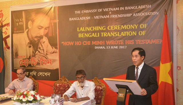 Đại sứ quán Việt Nam tại Bangladesh vừa chủ trì, phối hợp với Hội Hữu nghị Bangladesh – Việt Nam tổ chức Lễ ra mắt bản dịch sang tiếng Bengali từ bản tiếng Anh của cuốn sách “Bác Hồ viết Di chúc”, tác giả Vũ Kỳ do Nhà xuất bản Thế giới xuất bản năm 2013. Buổi lễ ra mắt cuốn sách đã được diễn ra trang trọng tại trụ sở Đại sứ quán Việt Nam tại thủ đô Dhaka. Trước khi buổi lễ diễn ra, các đại biểu đã thắp hương tưởng nhớ và bày tỏ lòng kính trọng đối với Chủ tịch Hồ Chí Minh.