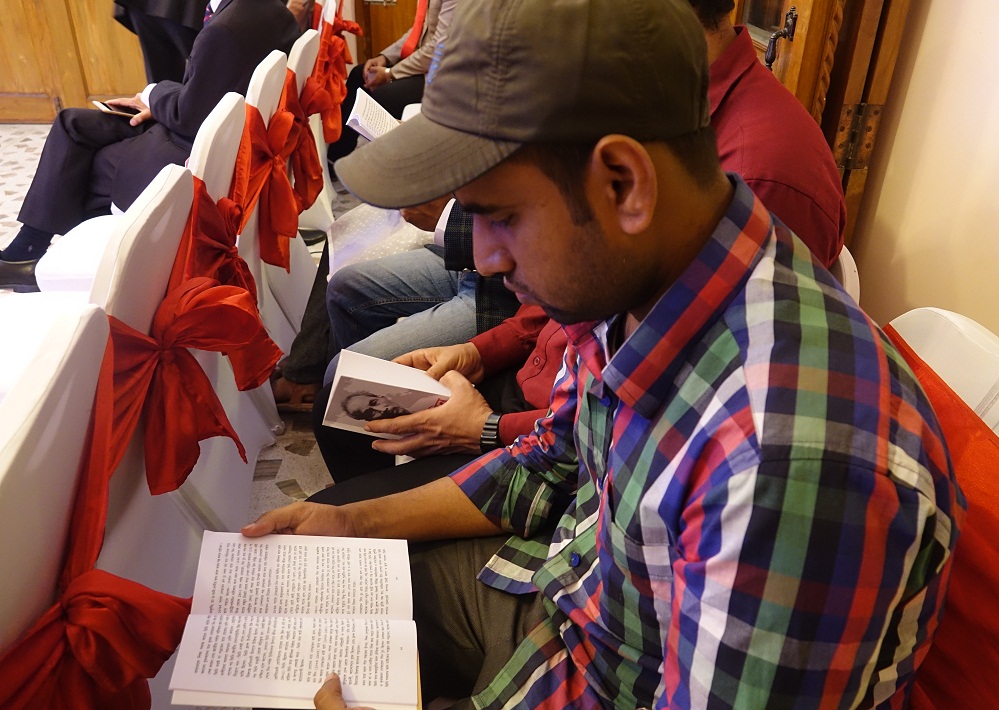 Cuốn sách “Tiểu sử Hồ Chí Minh” bằng tiếng Bengali trên tay các đại biểu và khách mời. |
