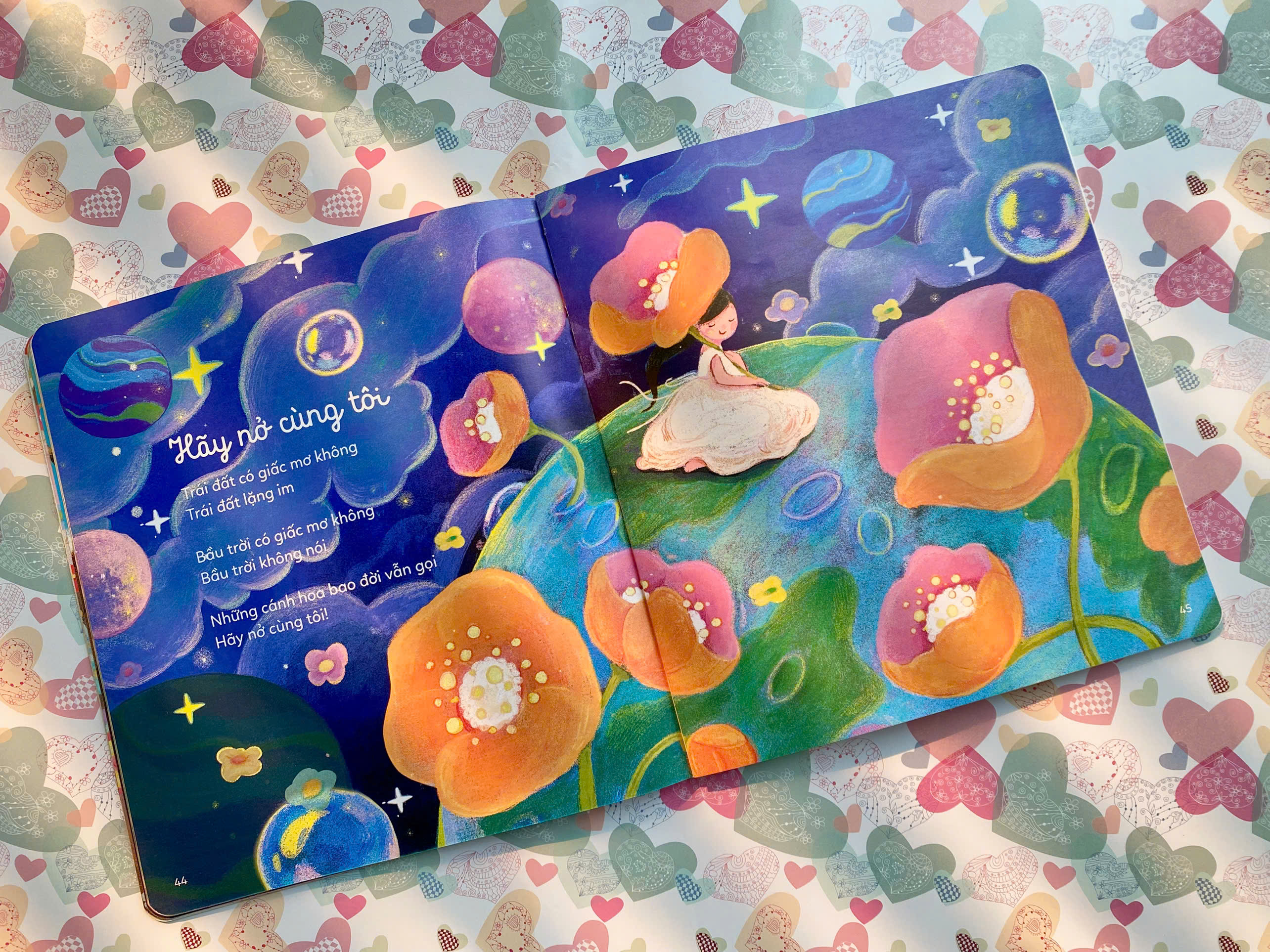 Đã có lời thơ đẹp, “Trắng mây tóc mẹ” còn được thổi thêm hồn nhờ những bức minh hoạ bay bổng của hoạ sĩ trẻ Quyên Thái.