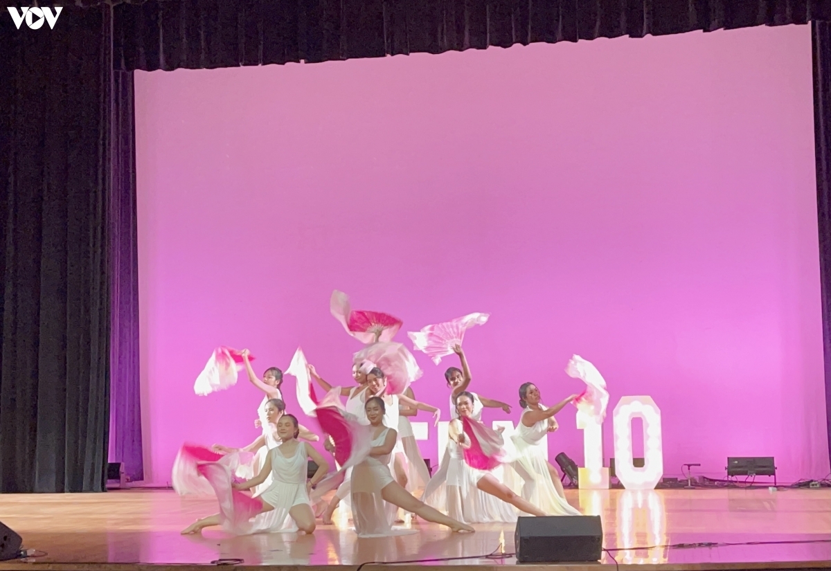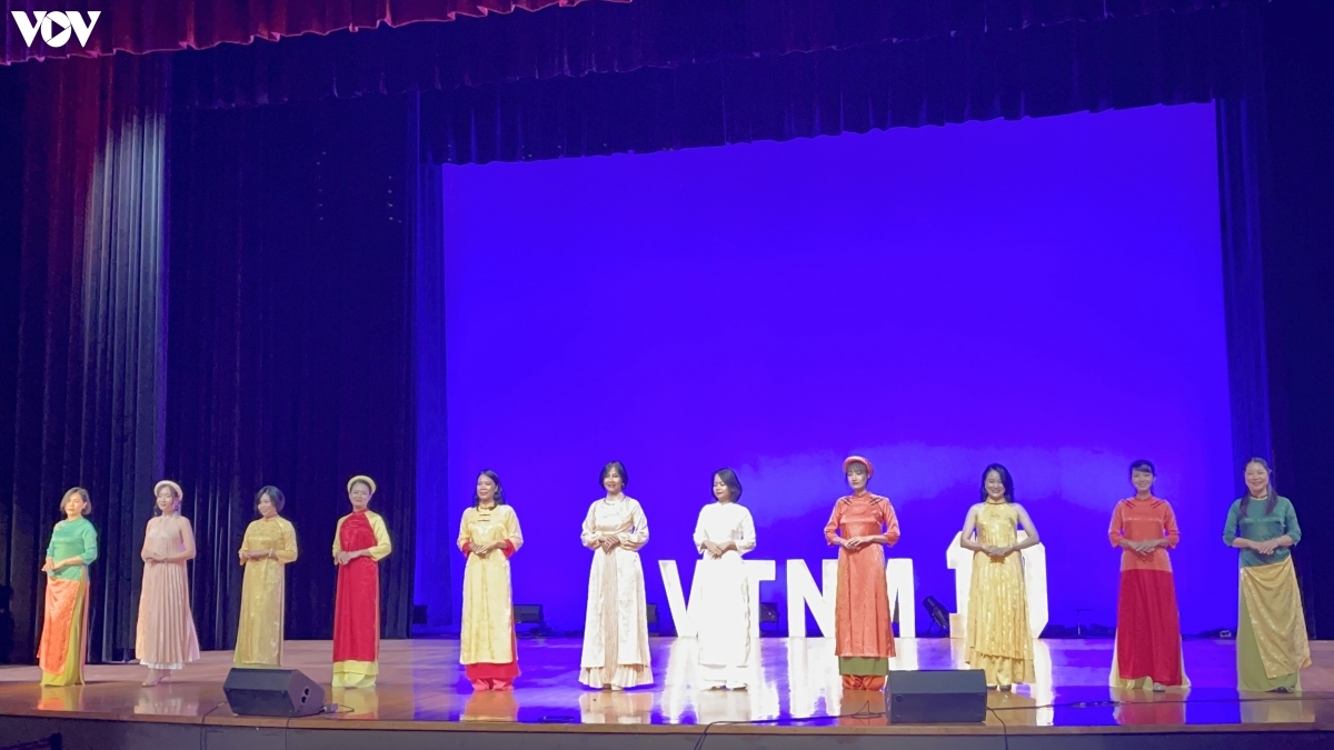 Trình diễn áo dài do các phu nhân Đại sứ quán và các cơ quan đại diện Việt Nam tại Mỹ thực hiện. |