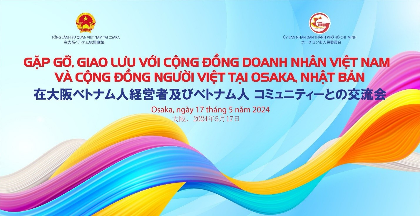 Trong khuôn khổ sự kiện “Ngày Thành phố Hồ Chí Minh tại Osaka, Nhật Bản” diễn ra từ 18 đến 19 tháng 5, UBND Thành phố Hồ Chí Minh chủ trì tổ chức chương trình Gặp gỡ, giao lưu với cộng đồng doanh nhân Việt Nam và cộng đồng người Việt tại Osaka, Nhật Bản” vào sáng mai (17/05/2024) tại thành phố Osaka.