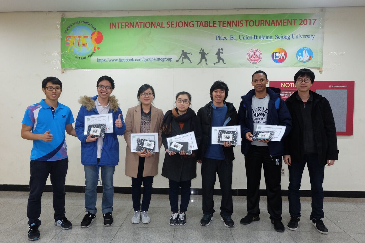 Nhân kỷ niệm 67 năm ngày truyền thống học sinh-sinh viên (9/1/1950-9/1/2017), ngày 07/01, Chi hội sinh viên Việt Nam tại trường đại học Sejong tổ chức Giải bóng bàn quốc tế Sejong 2017 dưới sự hỗ trợ của Hội sinh viên Việt Nam tại Hàn Quốc và trường đại học Sejong.