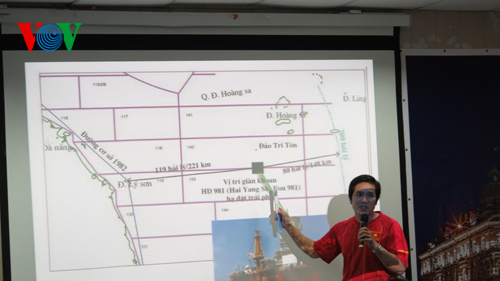 Buổi lễ trở nên sôi động hẳn lên khi nội dung về tình hình biển Đông được đề cập. Nghiên cứu sinh Phùng Thái Dương, Phó Trưởng Ban Đại diện của sinh viên Việt Nam tại Tomsk có bài thuyết trình ngắn gọn, tổng hợp tài liệu để tất cả các bạn sinh viên hiểu thêm về những nội dung được quy định trong Công ước Khung về luật Biển năm 1982, từ đó hiểu thực chất của vụ việc khi Trung Quốc xâm phạm vùng biển, đảo của Việt Nam, hiểu để có hình thức đấu tranh bảo vệ chủ quyền biển đảo quê hương.